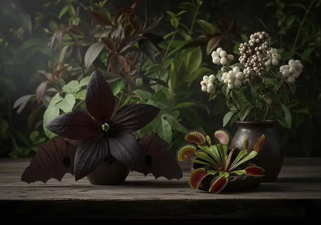 This flower is the spitting image of a bat. Its deep purple-black "wings," upright "ears," and long, trailing "whiskers" (bracteoles) that can grow over two feet long create an uncanny resemblance to the nocturnal creature. It’s pure gothic garden perfection.