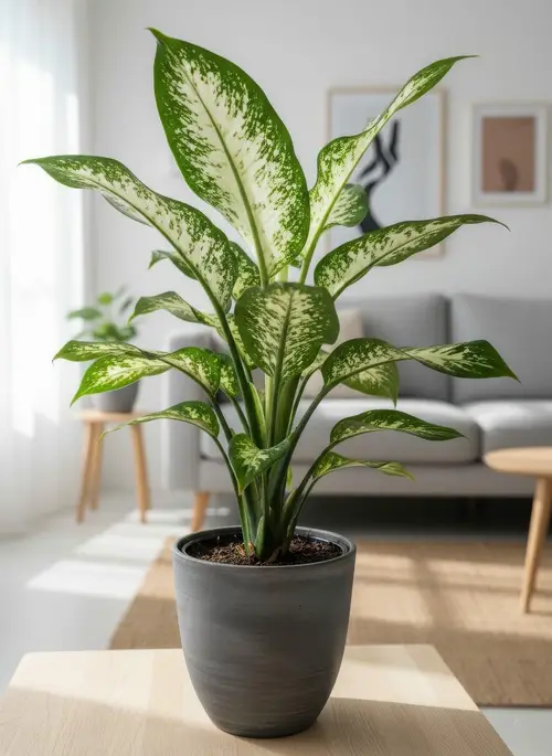 Consistent humidity is important for keeping your Dumb Cane's leaves looking their best.