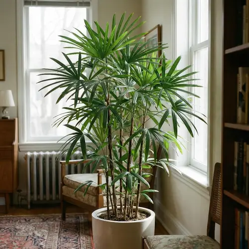 π Interesting Facts: Lady Palm is one of the few indoor palms that keeps a tidy, upright silhouette for years without becoming floppy or top-heavy. Each stem carries fan-shaped leaves divided into broad segments, which gives the whole plant an expensive, tailored look even when the care routine is simple.