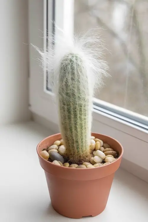 π§€ Handle with care! Use thick gloves or wrap the cactus in newspaper when repotting. The soft hair hides sharp spines.