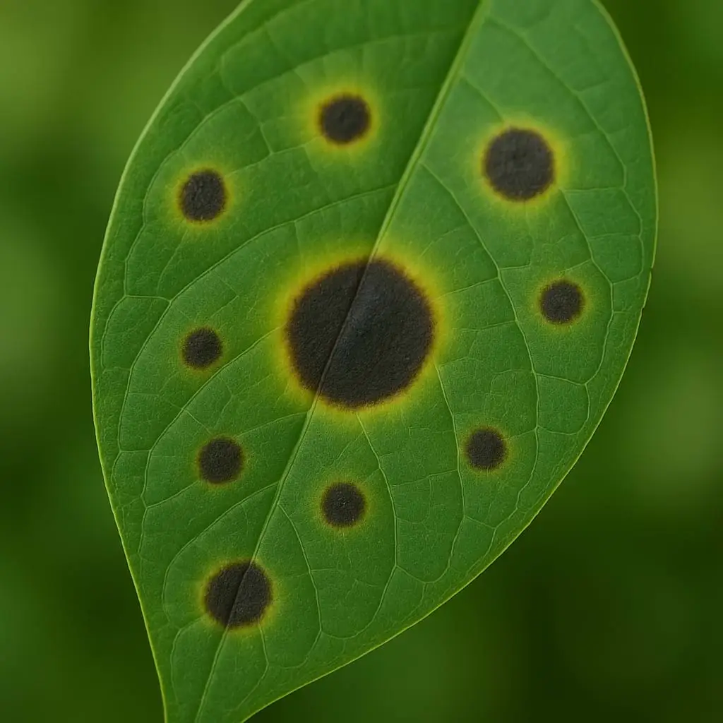 | Circular brown spots with a distinct yellow halo | N/A | Fungal Leaf Spot Disease |
