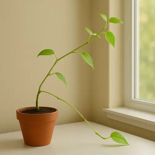 Why it happens: The plant is programmed to survive. It perceives the low light as being "buried" and triggers its emergency growth plan to find the sun before it runs out of energy.